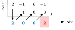 Jika suku banyak dibagi , maka sisanya adalah ….
